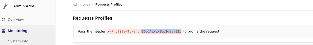 - Grab the profiling token from Monitoring > Requests Profiles admin page