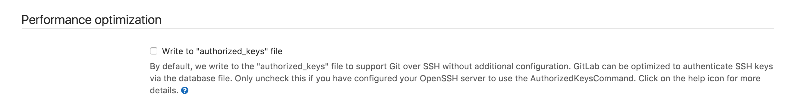 Write to "authorized_keys" file in the Admin Area > Settings > Network > Performance optimization of your GitLab