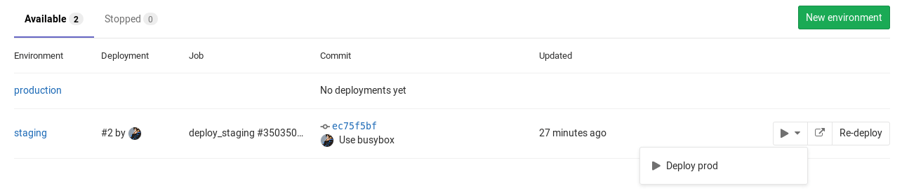 $CI_ENVIRONMENT_NAMEvariable will be updated with the new environment name. -