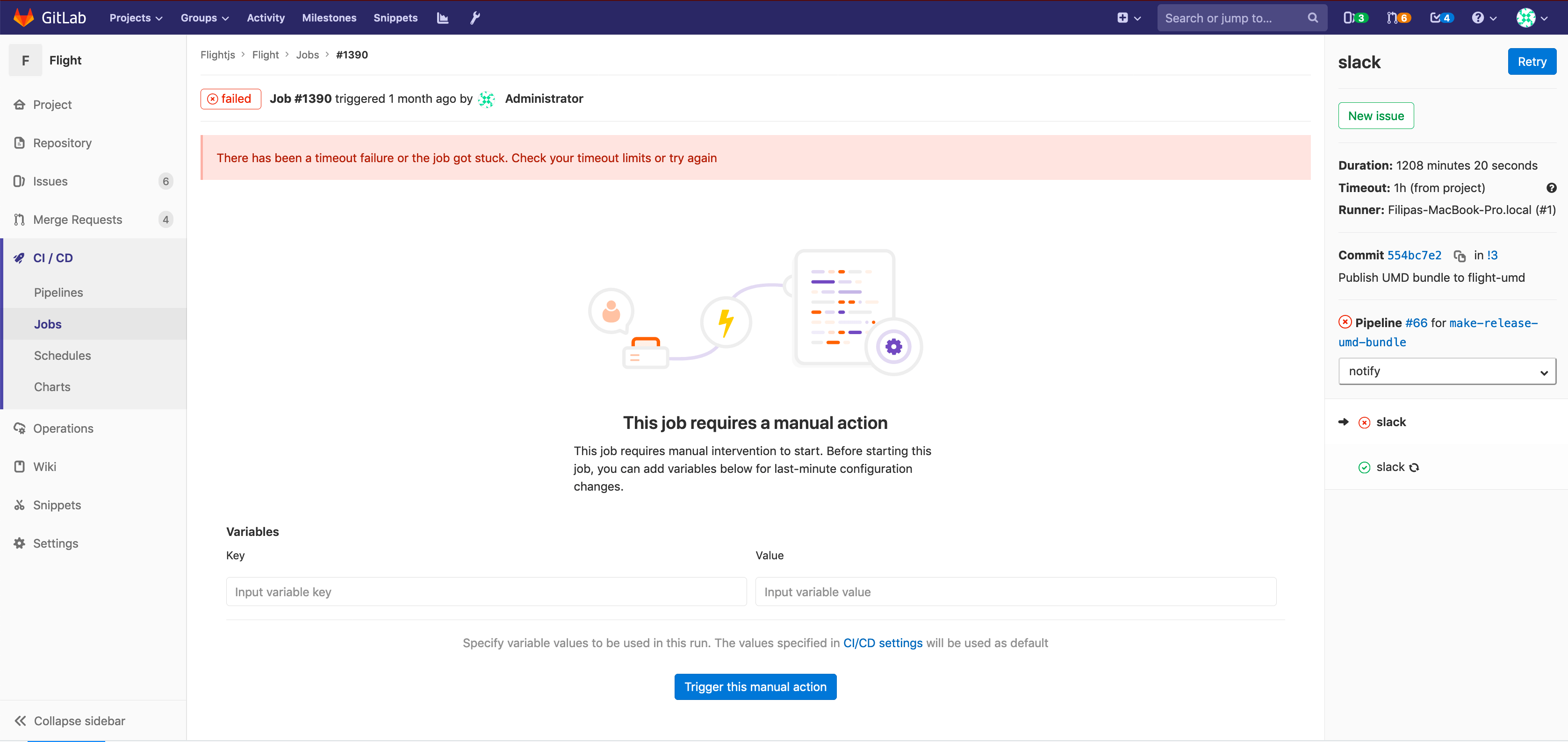 stage has a job with a manual action.