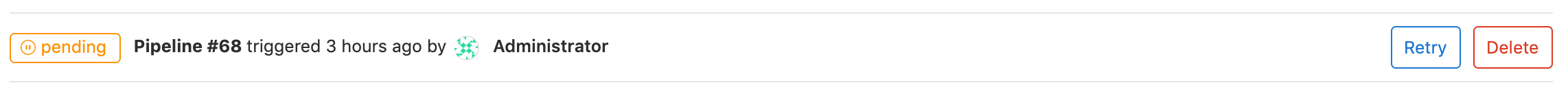 Clicking on a pipeline will bring you to the Pipeline Details page and show the jobs that were run for that pipeline. From here you can cancel a running pipeline, retry jobs on a failed pipeline, or delete a pipeline.
