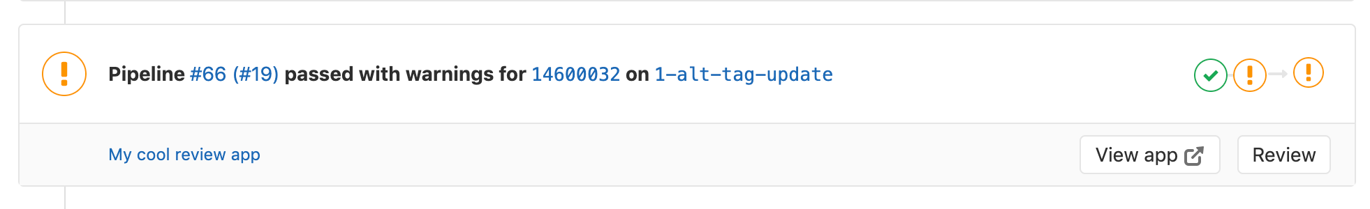 Once set up, the review app link in the merge request widget can take you directly to the pages changed, making it easier and faster to preview proposed modifications.
