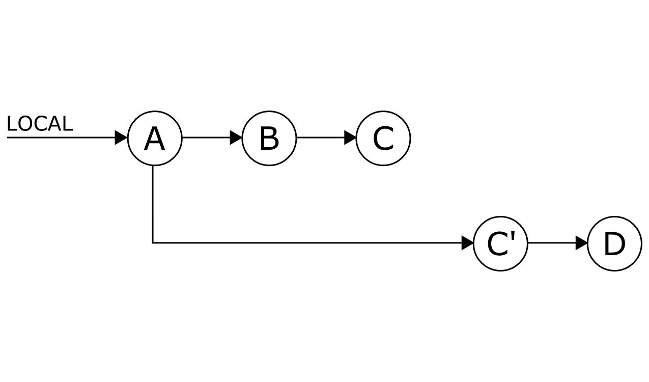 In our example we will assume there are commits A,B,C,D,E committed in this order: A-B-C-D-E,