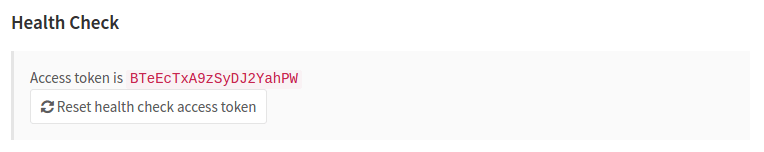 accepted token can be found under the Admin Area > Monitoring > Health check