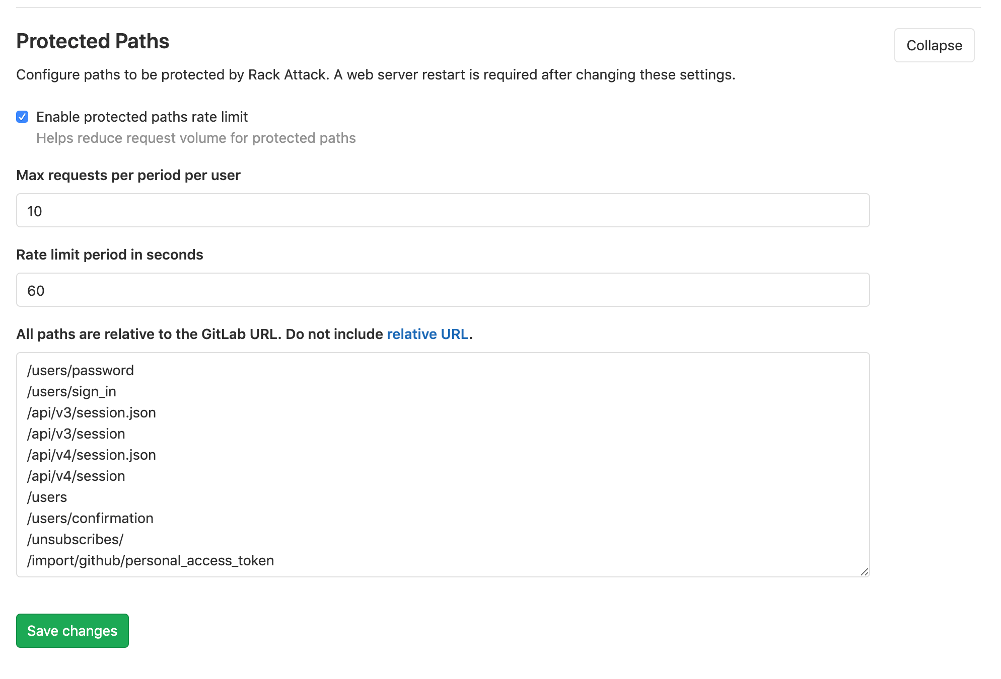 That's it. Protected paths throttle are now managed by GitLab admin settings.