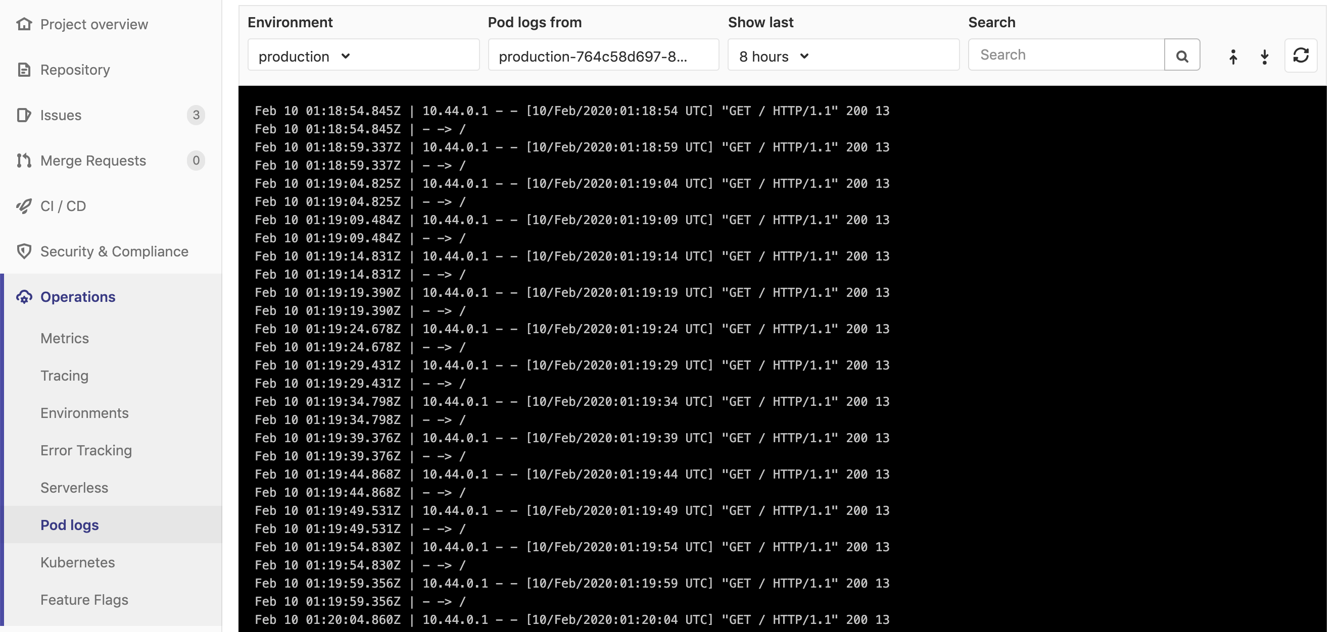 GitLab makes it easy to view the logs of running pods in connected Kubernetes clusters. By displaying the logs directly in GitLab, developers can avoid having to manage console tools or jump to a different interface.