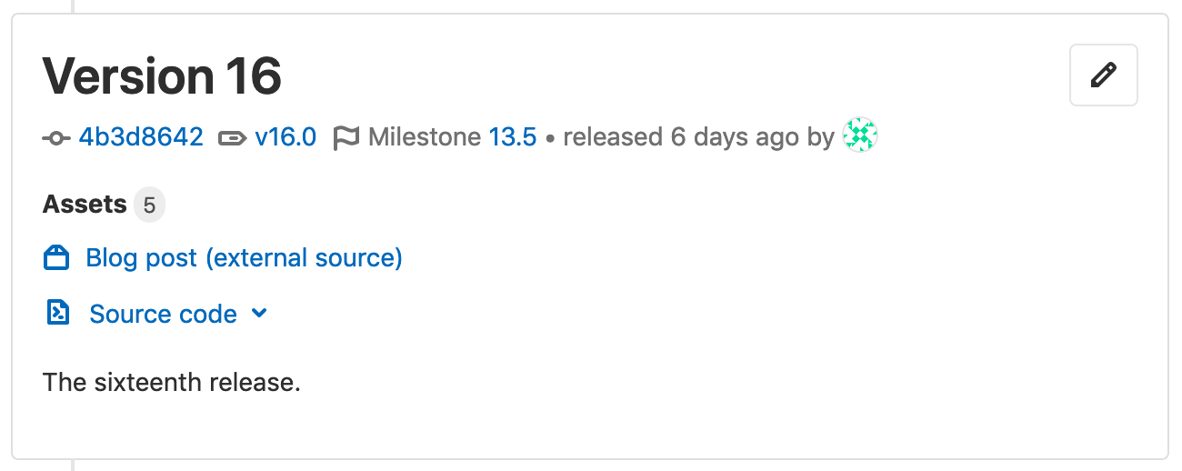 To edit the details of a release, navigate to Project overview > Releases and click the edit button (pencil icon) in the top-right corner of the release you want to modify.