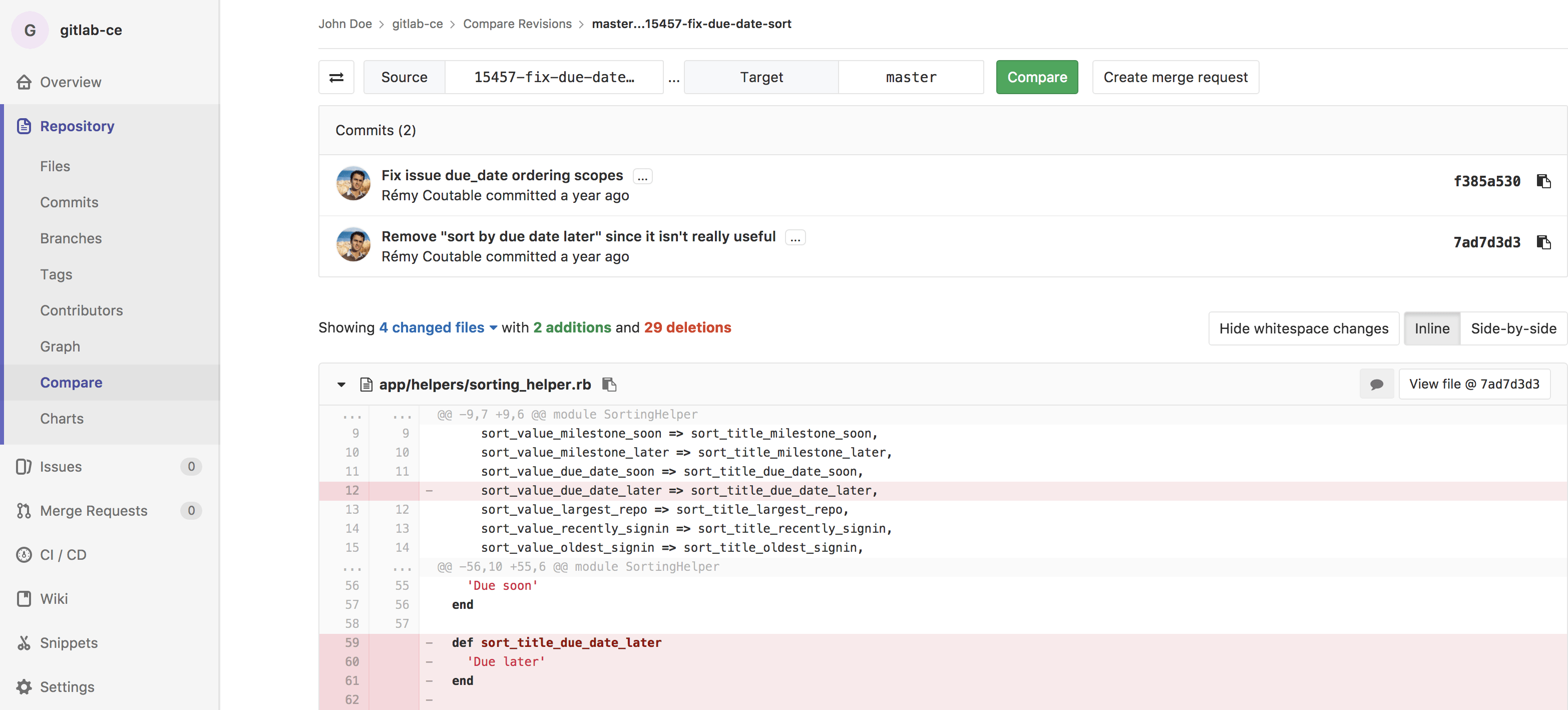- Select Repository > Compare in the sidebar.
