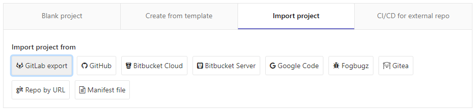 The GitLab project import feature is the first import option when creating a new project. Click on GitLab export: